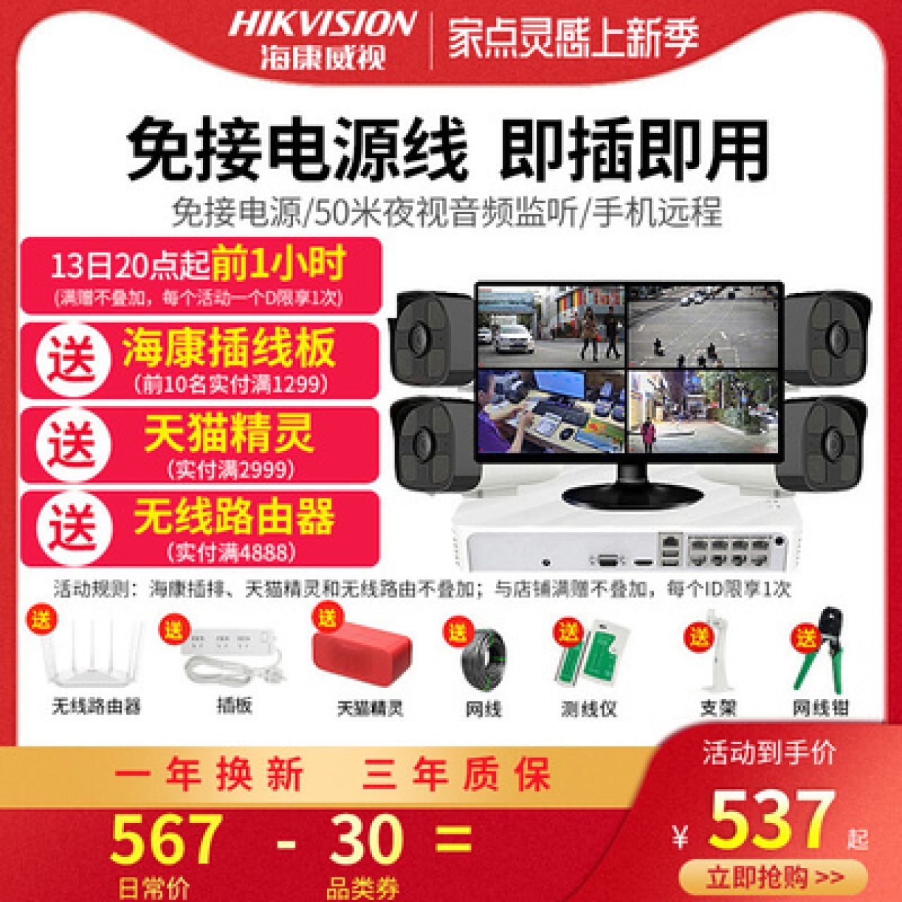 海康威视商用监控摄影头设备套装摄像头高清夜视室外远程手机户外